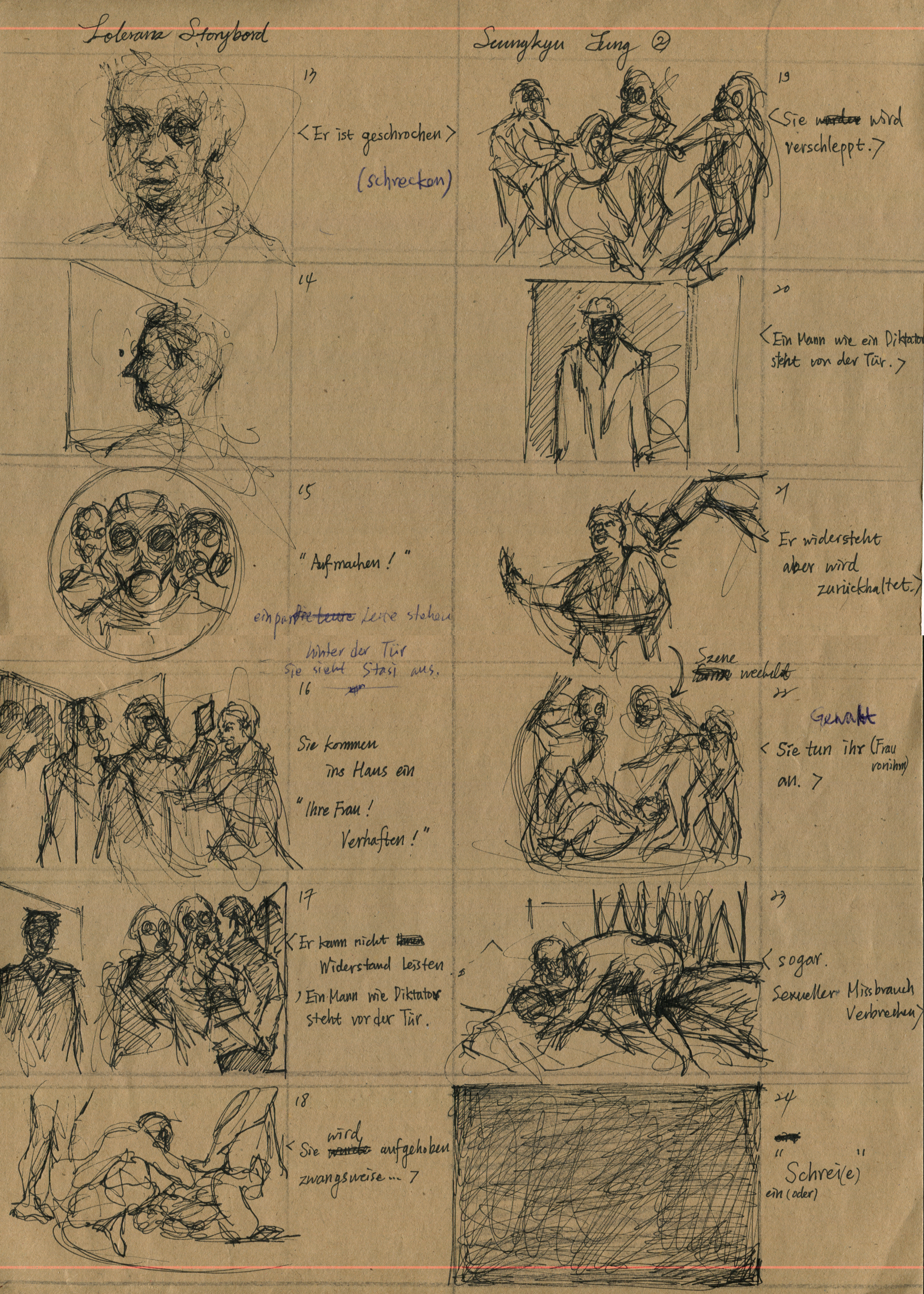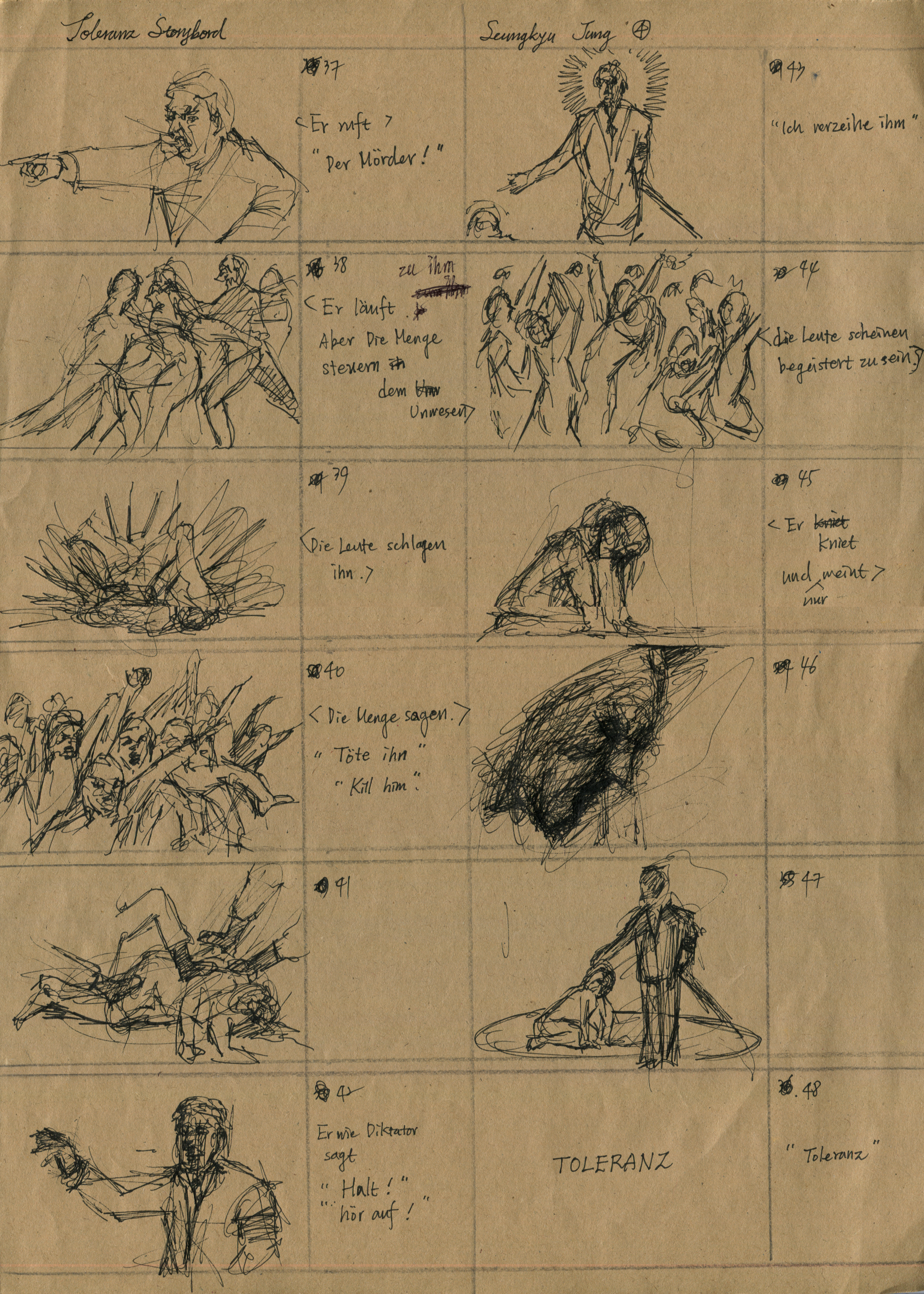 The video work, Tolerance, is an audio-visual essay composed of 165 different movie scenes extracted from 110 movies.